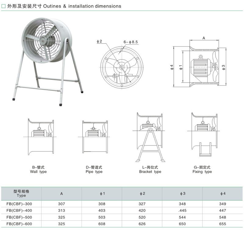 1.本產(chǎn)品由防爆電機、葉片、風筒等組成,葉片由鑄鋁合金制成,風筒由鋼板制成。