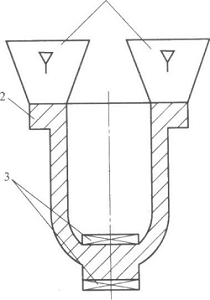 依據(jù)放置部位,直澆道分成外冷鐵和內(nèi)冷鐵,安放在防爆電氣設(shè)備鑄造件外部的為外冷鐵,安放在防爆電氣設(shè)備鑄造件的內(nèi)部為內(nèi)冷鐵。冷鐵一般放置于零件的厚、薄壁相接處厚的一邊,那樣就可以實(shí)現(xiàn)厚、薄壁一部分與此同時(shí)凝固。